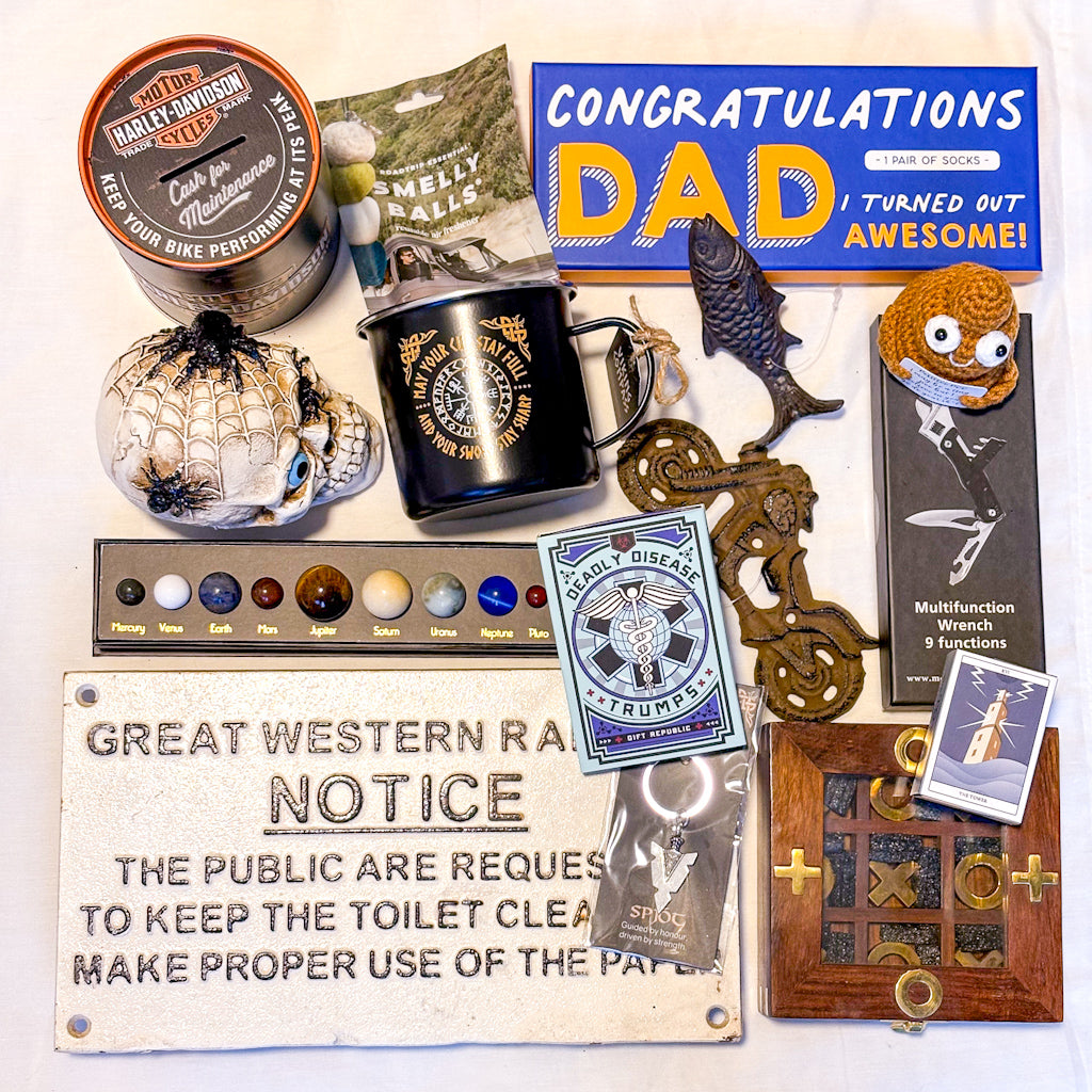Quirky, weird and wonderful things that he will treasure.