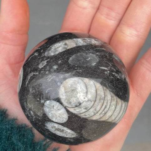 Crystal UV reactive Yooperlite polished XL sphere with gold stand