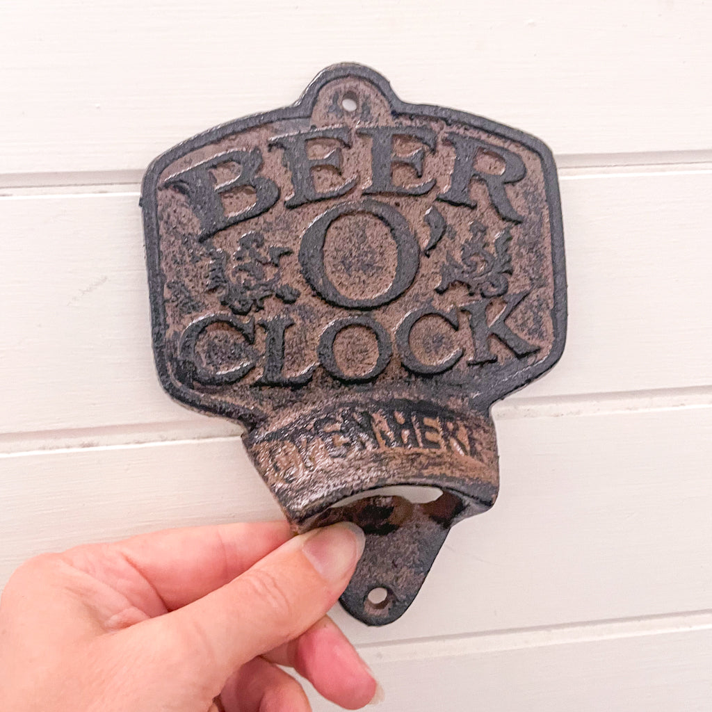 Purchase Beer o clock vintage cast iron bottle opener / wall hook online now from Six things shop Australia.