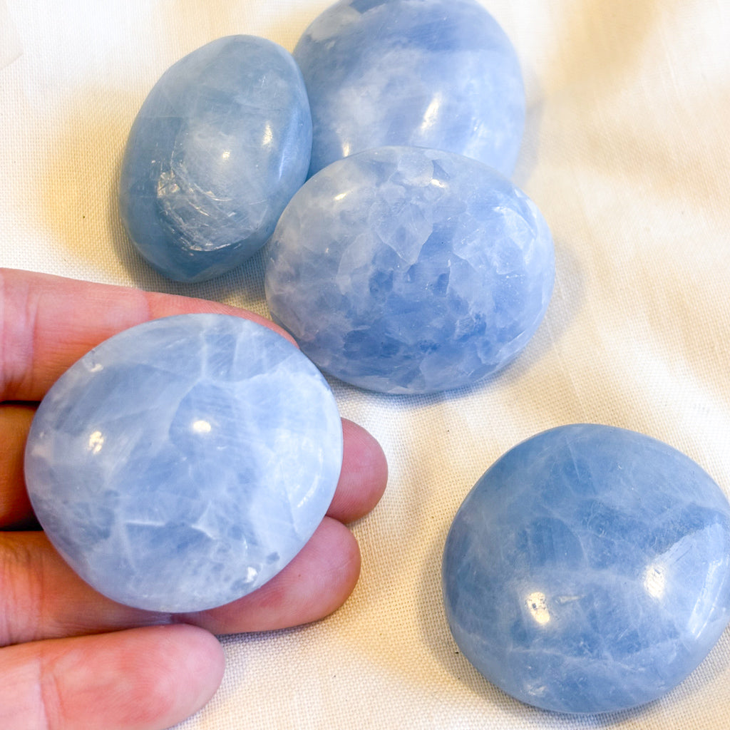 Purchase Blue calcite crystal palm stone online now from Six things shop Australia.