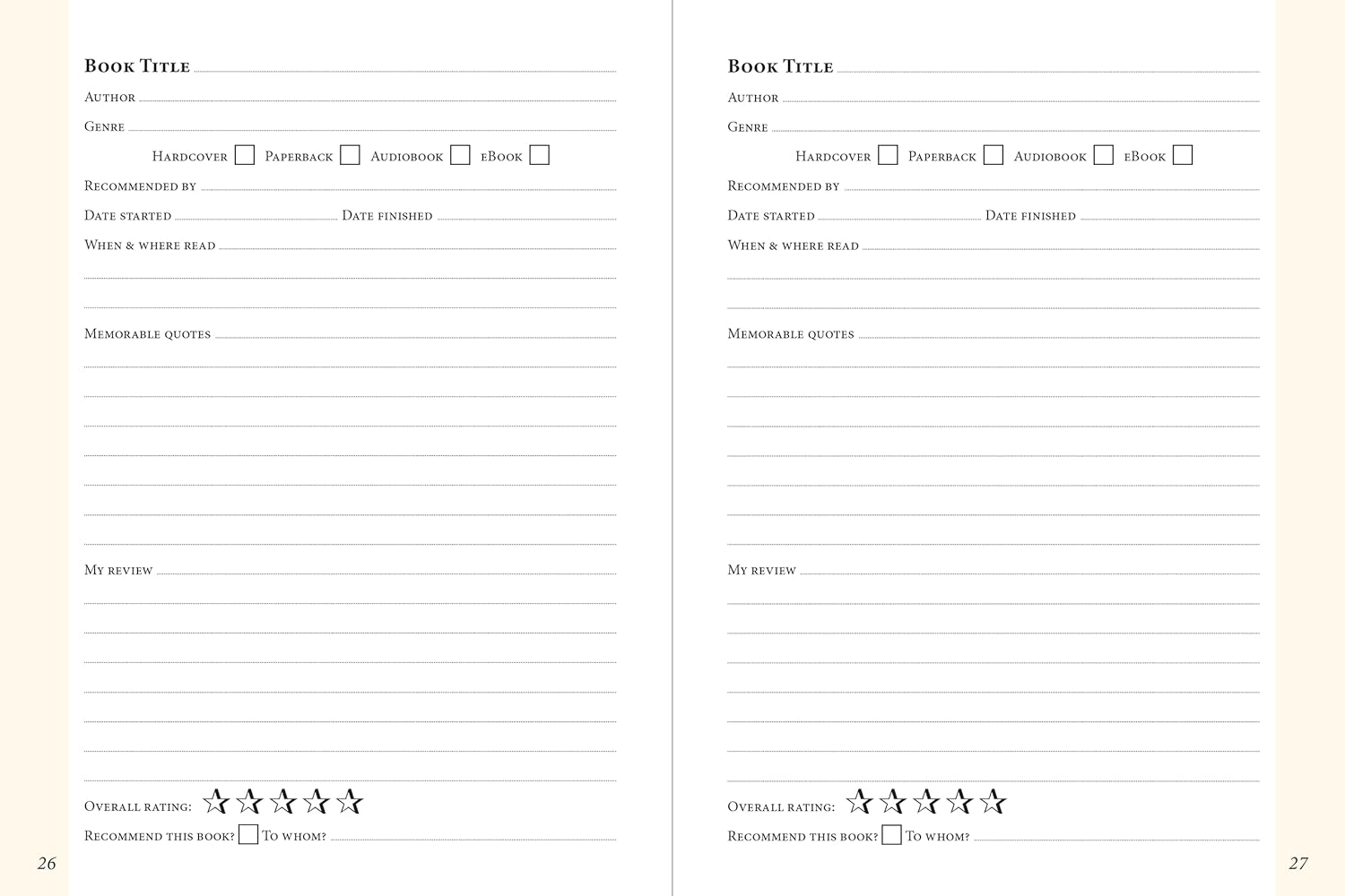 - Space to note up to 100 books you want to read next!