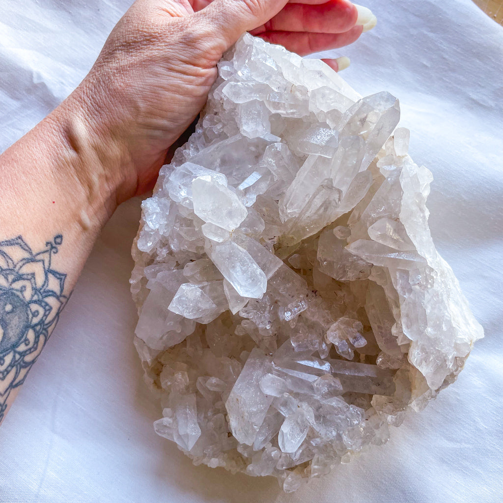 Purchase Clear quartz crystal point chunky cluster XL 1.9kg online now from Six things shop Australia.