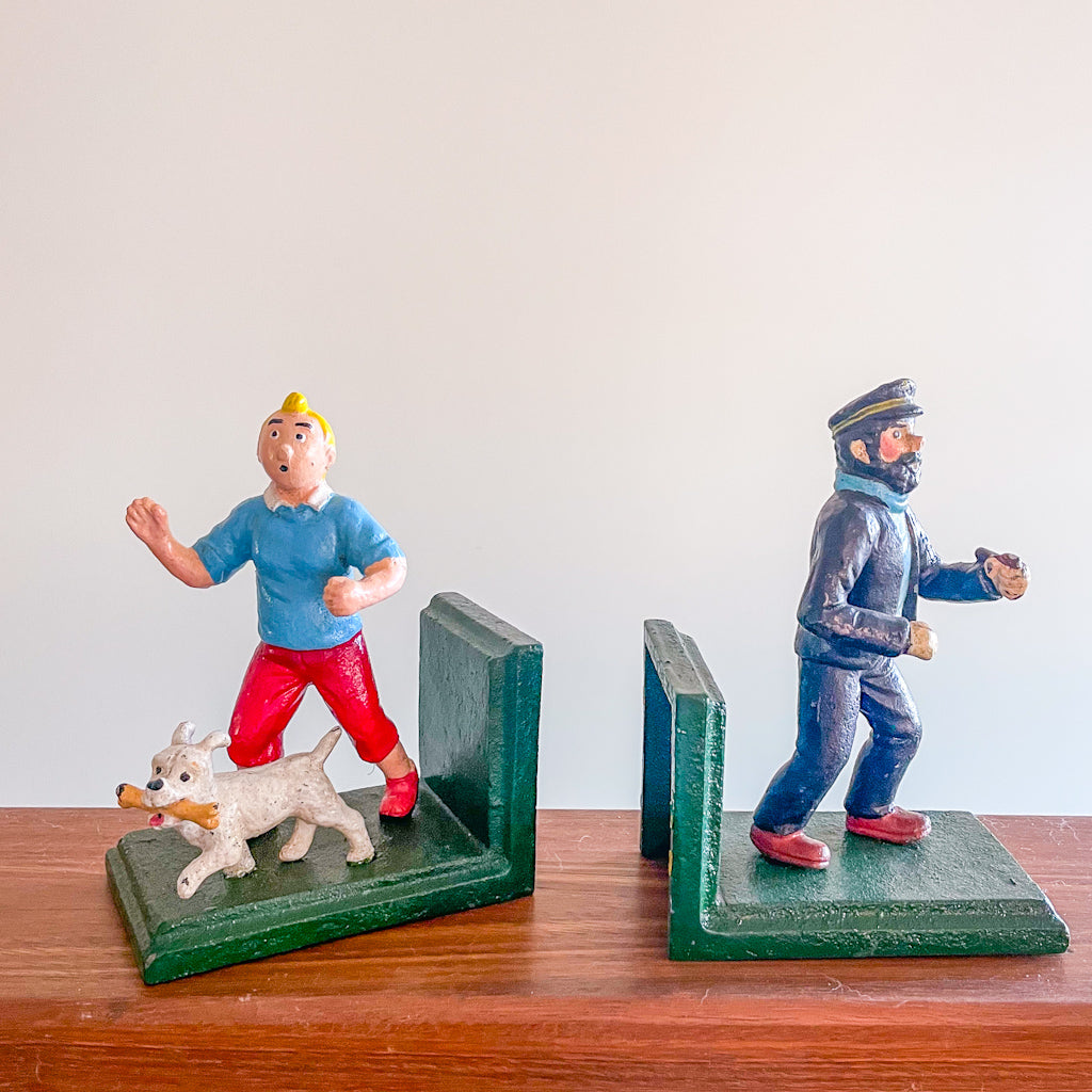 Purchase Collectible Tintin & Snowy dog hand painted metal statue / bookend set online now from Six things shop Australia.