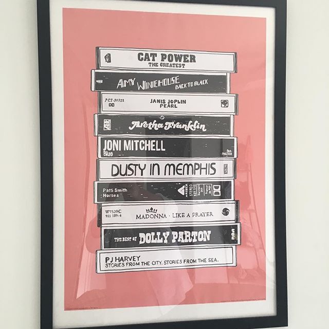 Divas cassettes poster - Cat Power, Amy Winehouse, Janis Joplin, Aretha Franklin, Joni Mitchell, Dusty, patti Smith, Madonna, Dolly Parton and PJ Harvey.