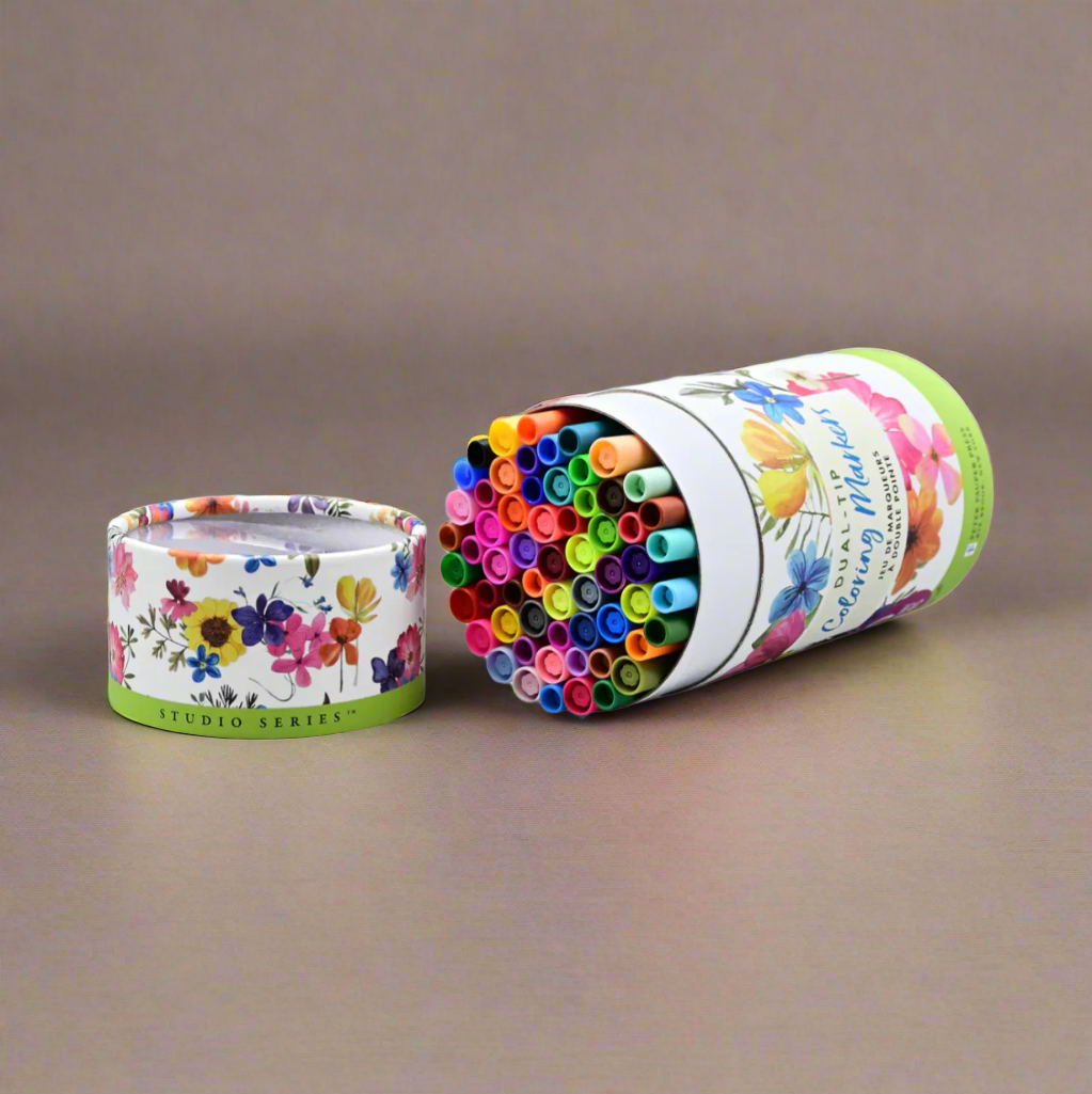 Big, beautifully packaged set of dual-tip markers is perfect for drawing, lettering, colouring, and so much more!
