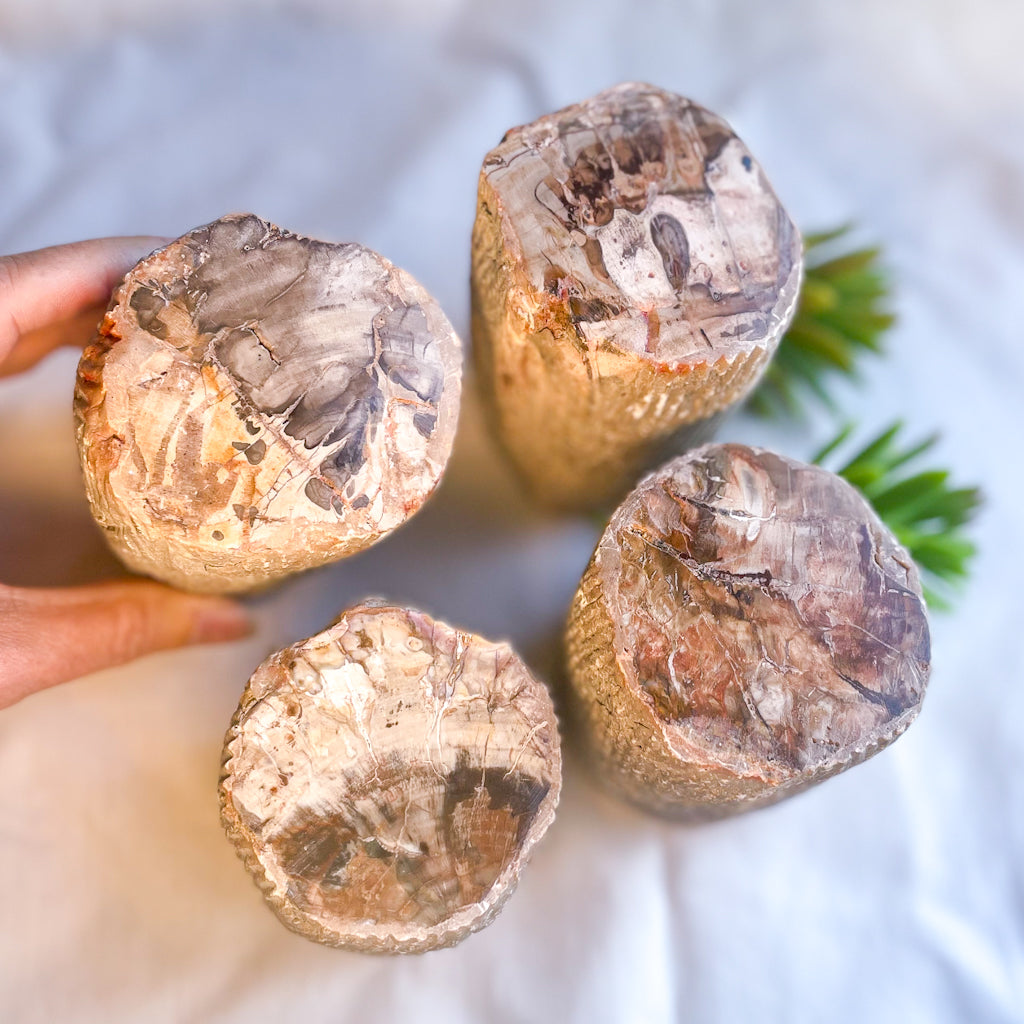Each piece has been highly polished and was found in western Madagascar. Petrified wood is a crystal rock that was a branch of a living tree during the Late Triassic era (before Jurassic), 252 to 201 million years ago. Buried under volcanic ash, the wood transformed over millions of years, enriched with silica minerals and trace elements, resulting in stunning colours. This transformation and journey over time is a symbol of patience. Spiritually believed to help the beholder have more patience and be more tolerant, due to the physical ageing process of the wood transforming into stone. It’s spiritually believed to help the beholder in past life recall, giving insight into past life’s struggles to help to bring forward these memories in order to help with healing.