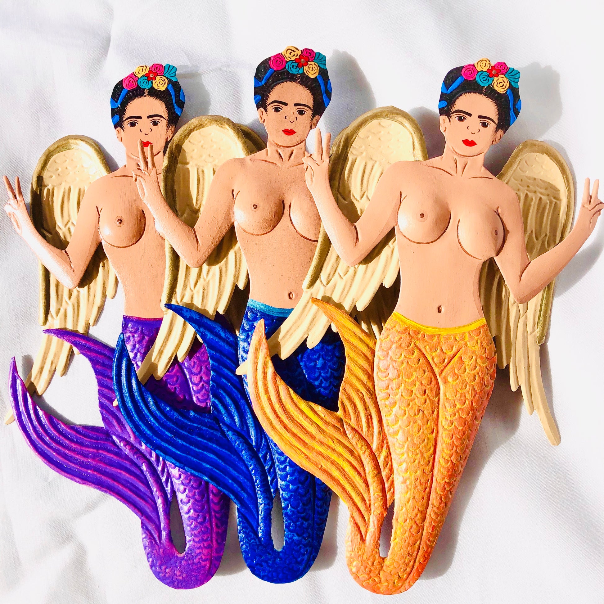Purchase Frida mermaid hand painted metal wall hanging online now from Six things shop Australia.