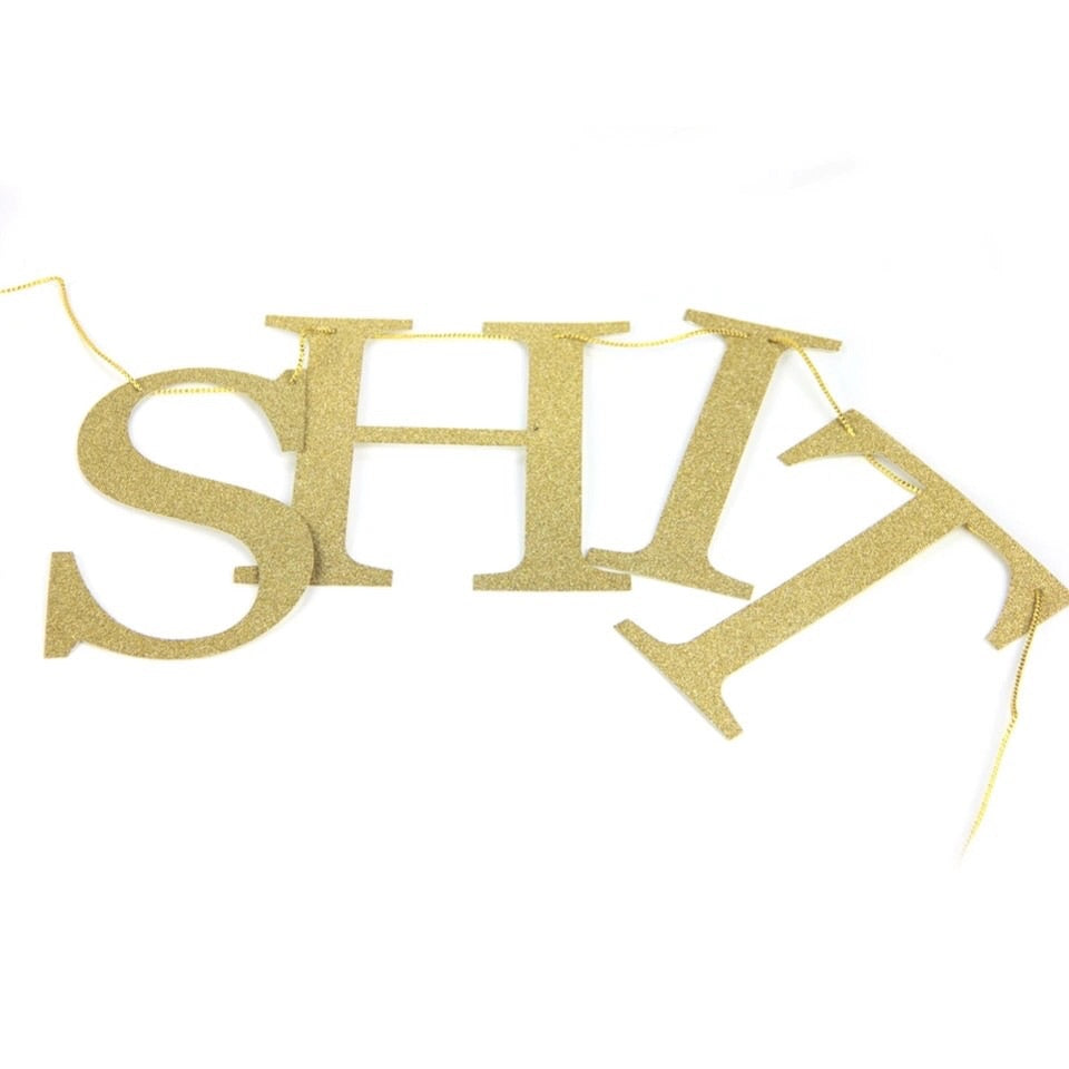 Paper bunting with glitter gold text that reads HOLY SHIT YOU’RE OLD.