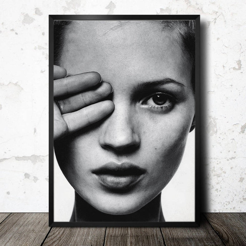 Have a little fun with this monochrome black and white Kate Moss print.