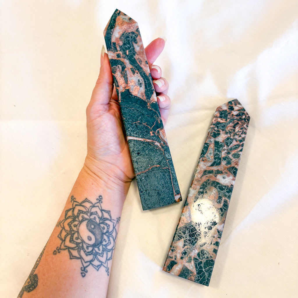 Crazy Lace Agate can also be known as Mexican Lace Agate and obtains the standard qualities of agate and more in these extra large towers.