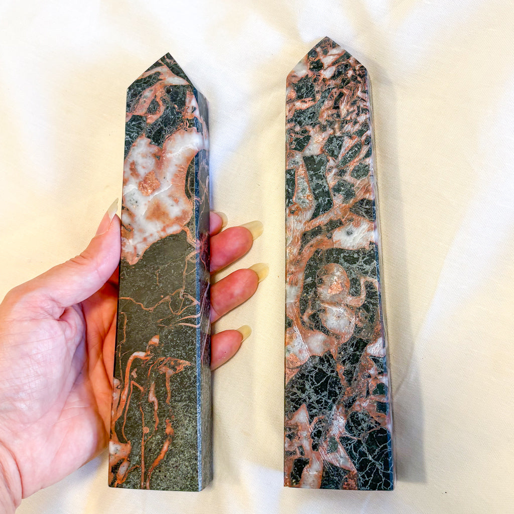 These Red Crazy Lace Agate towers display very distinct swirls, bands and colour.