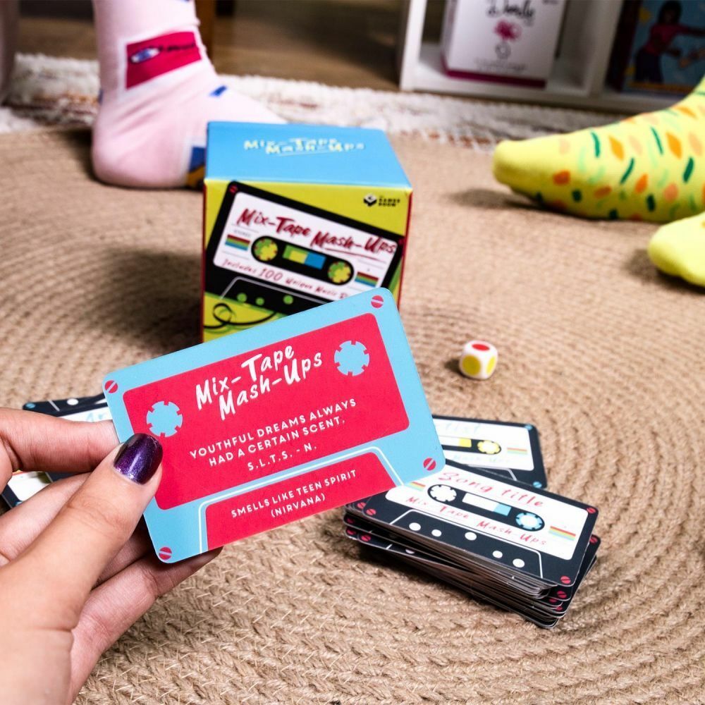 3 Levels of difficulty – Team or solo play. Players must guess the artist or song title by decoding the riddle on the card alongside the initials of either the song or artist in question. The winner is the player or team with the most riddles successfully decoded. A perfect gift for any friend music to test your song and artist knowledge.