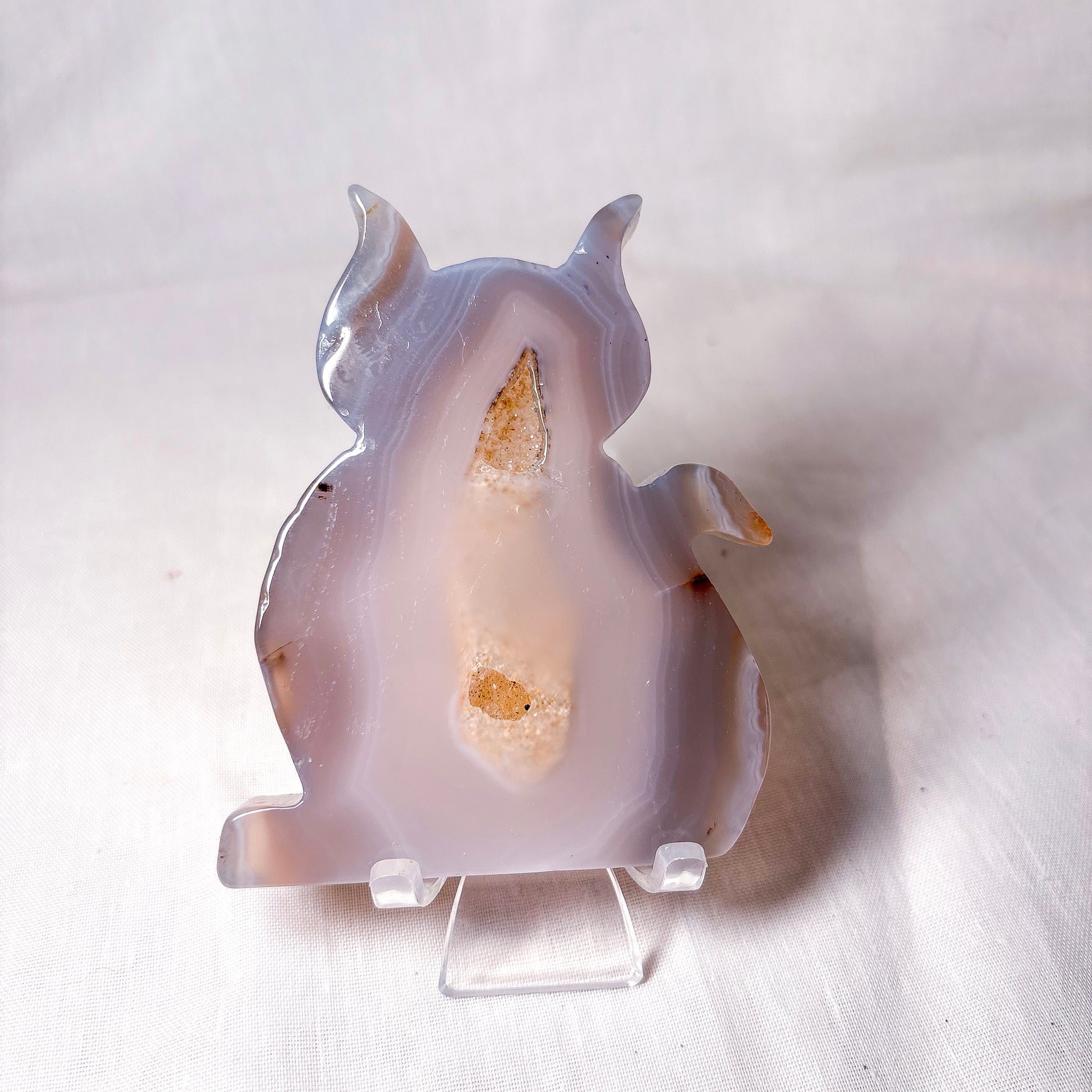This agate statue of a pussy cat with a druzy center makes the most beautiful natural gift. A great desk accessory, or on your bedside table.