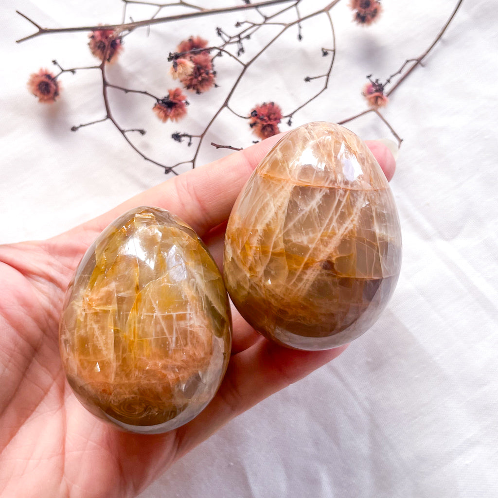Purchase Peach Moonstone crystal egg online now from Six things shop Australia.