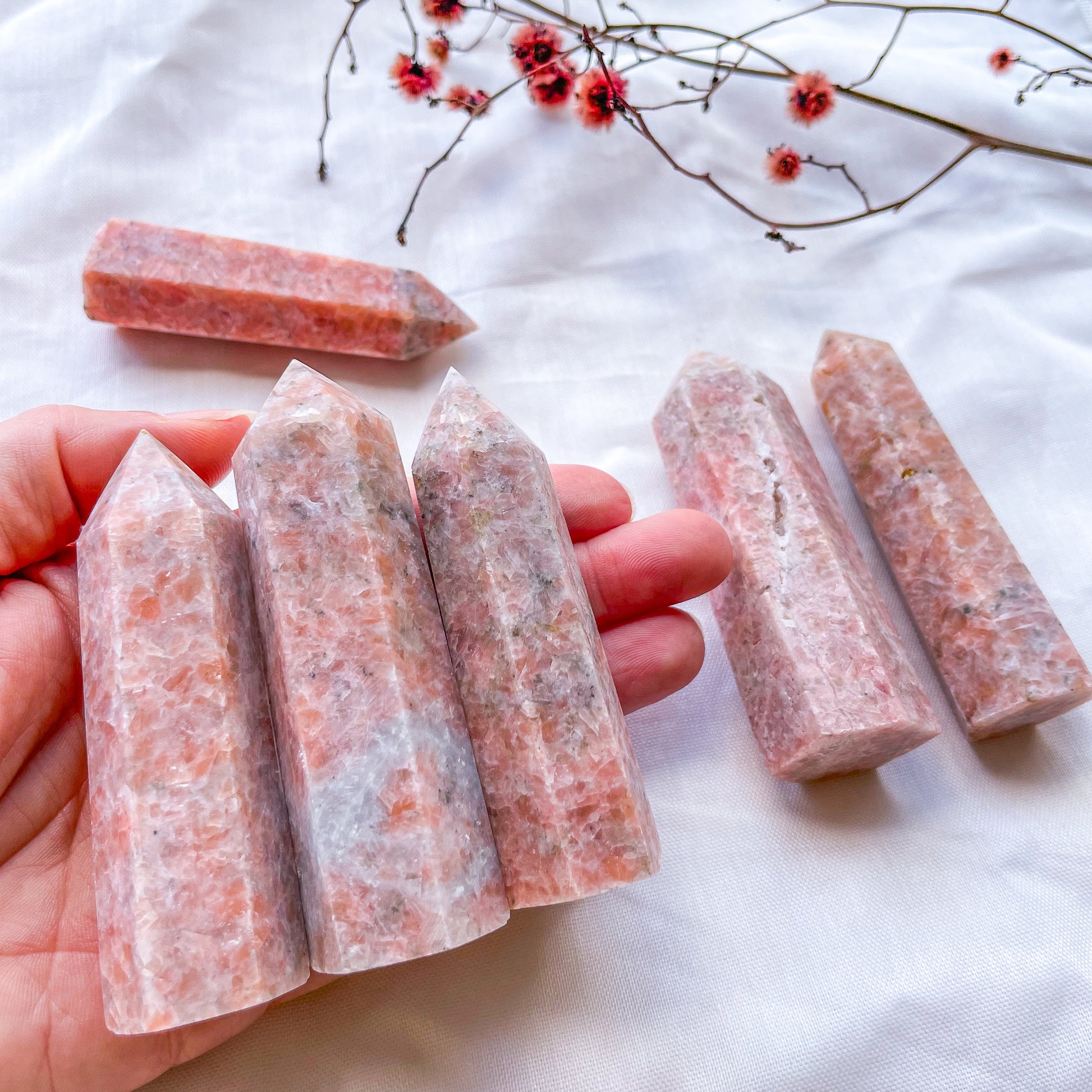 Purchase Pink sunstone crystal tower online now from Six things shop Australia.