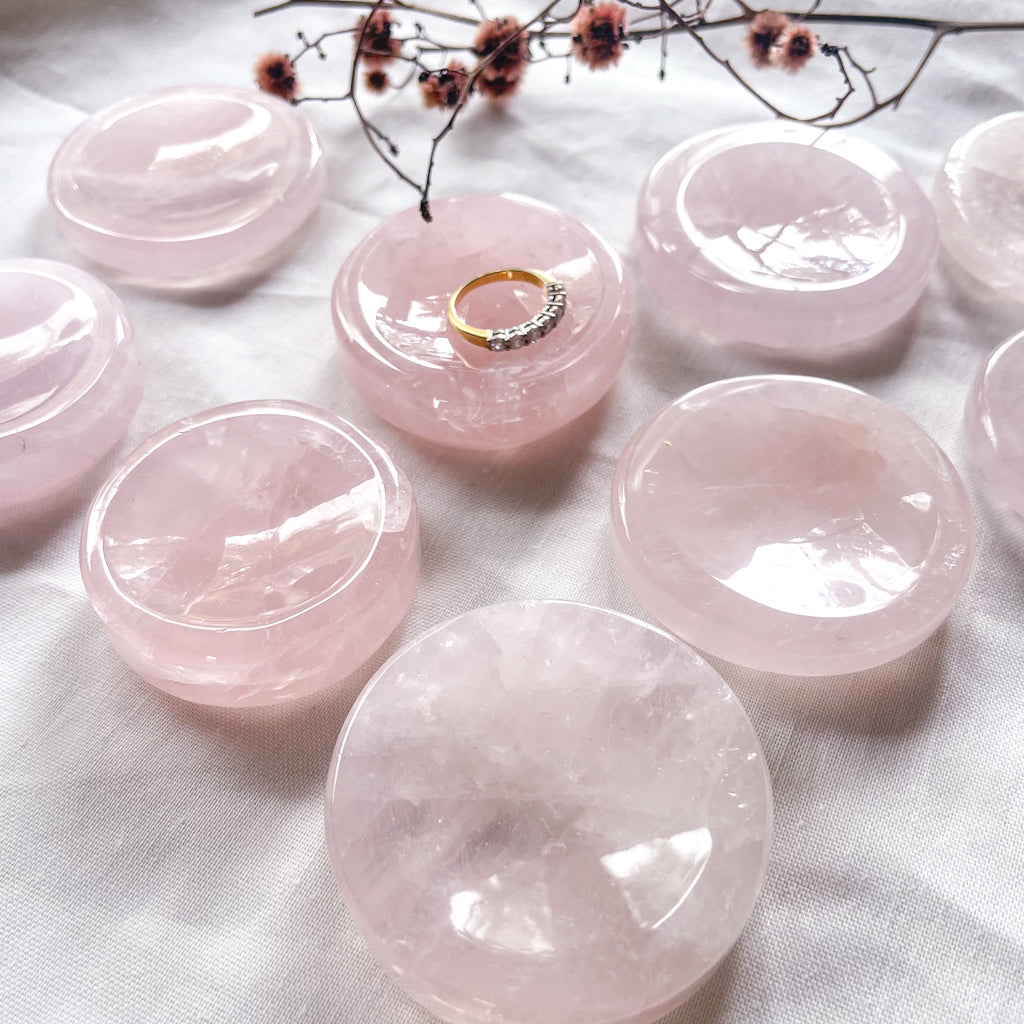 Purchase Rose quartz crystal ring bowl / carved dish online now from Six things shop Australia.