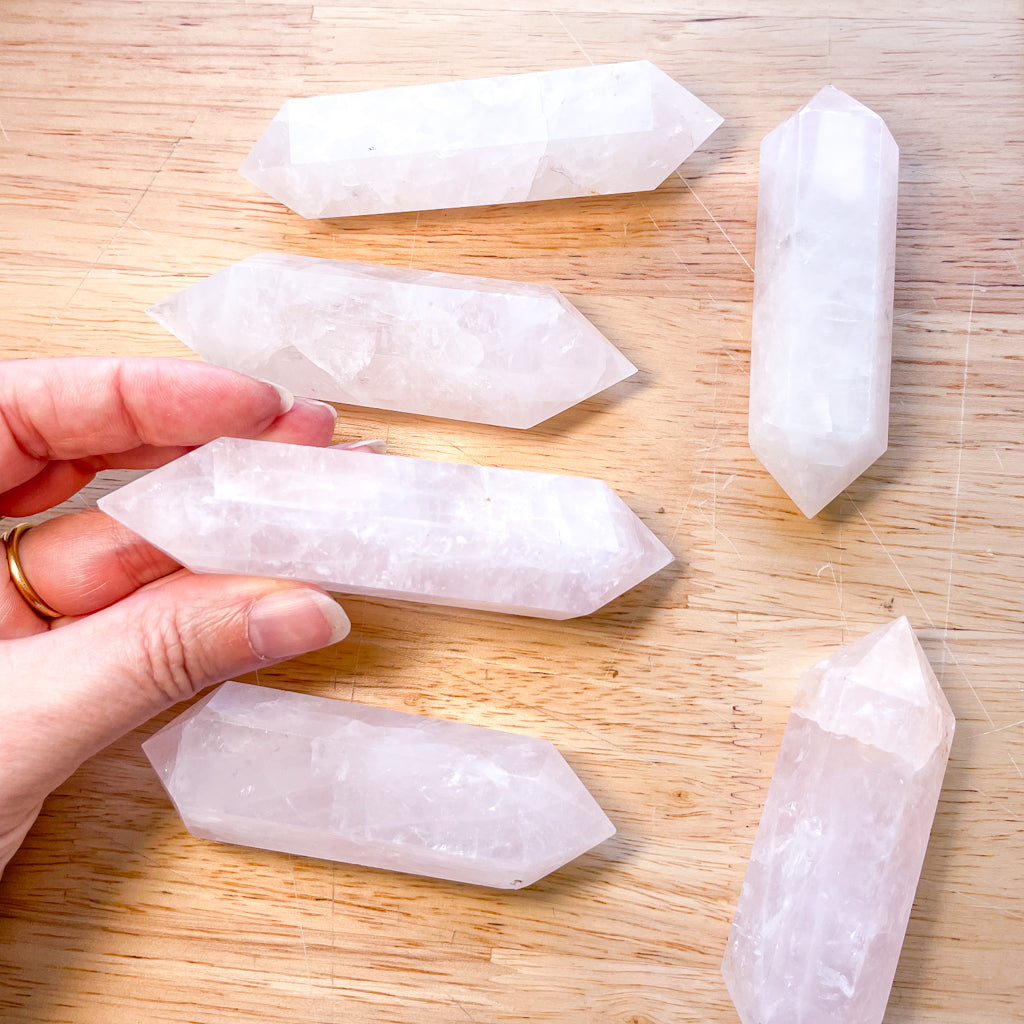 Purchase Rose quartz DT crystal double terminated point online now from Six things shop Australia.