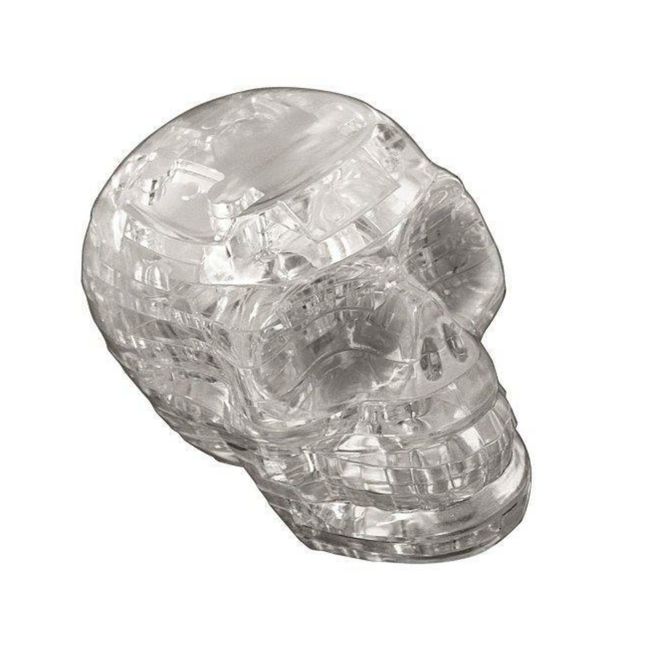 Transparent Skull 3D puzzle to bend your brain! It is a sleek, translucent, crystalline puzzle with unique interlocking pieces.