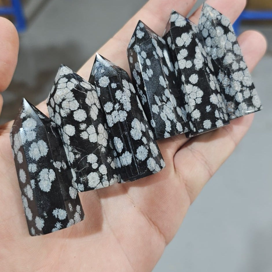Purchase Snowflake obsidian crystal tower online now from Six things shop Australia.