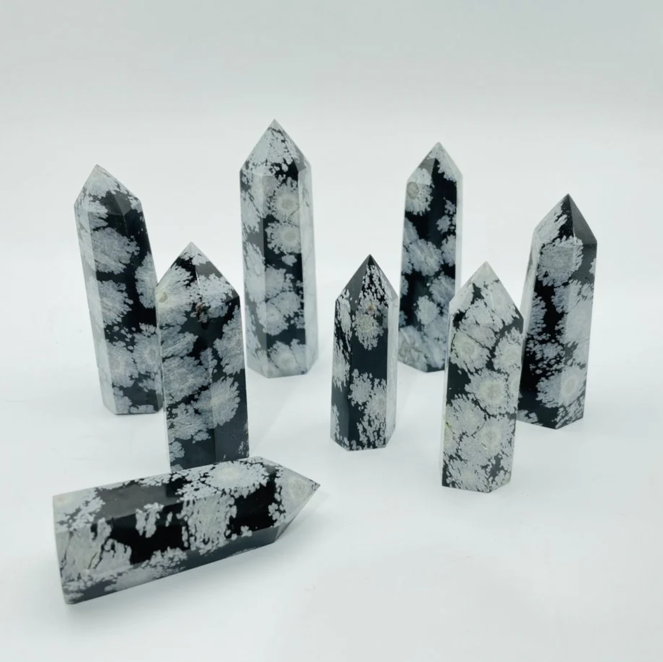 These black and white snowflake obsidian crystal towers will melt yours.