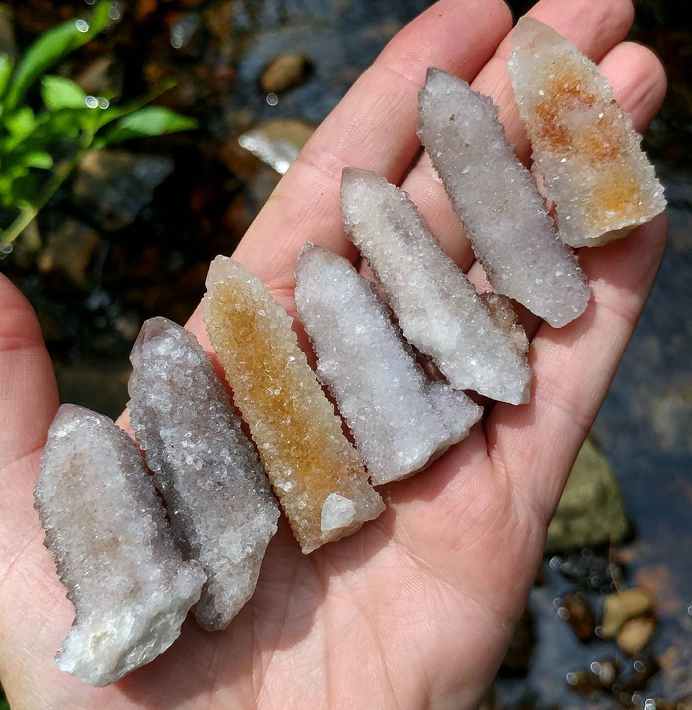 Fairy Goblin Spirit Quartz comes from South Africa. This type of spirit quartz is a crystal for harmony and balance. The stone is coated in small crystals amplifying its energy. This stone is great for aligning chakras! Witches Finger is a rare type of quartz that has inclusions of Iron, Feldspar, Calcite, Zircon, and Muscovite. In its natural state, Witches Finger will remind you of the fingers of a witch that’s often depicted in fairy tales. This stone will connect to all your chakras and support you in overcoming the darker side of your nature with its highly reflective qualities that delve deep into your shadow self. It can be used for meditation, for channeling information that pertains to your spiritual growth, and for attracting spiritual allies who will help you travel your spiritual path.