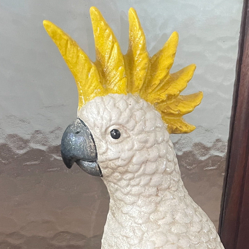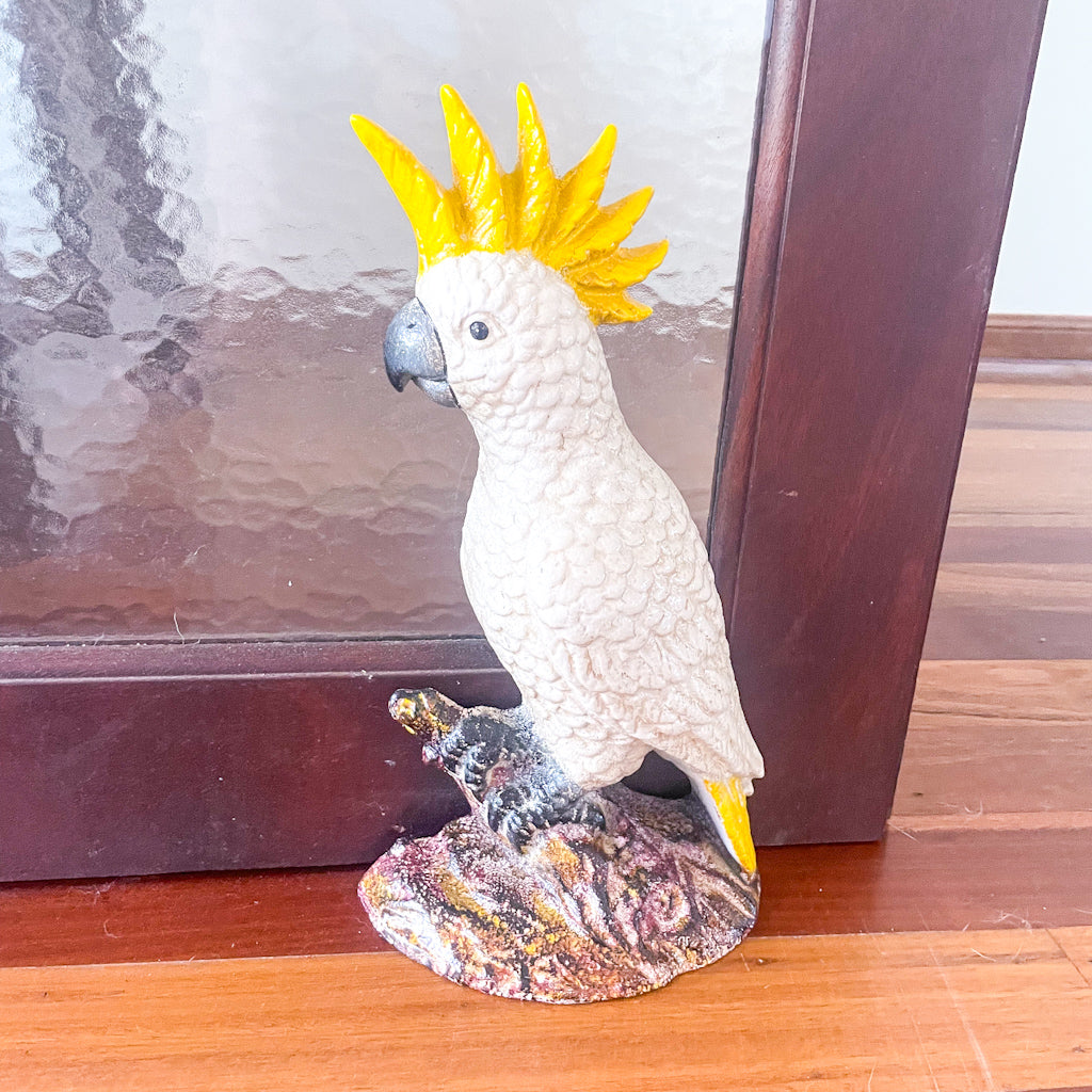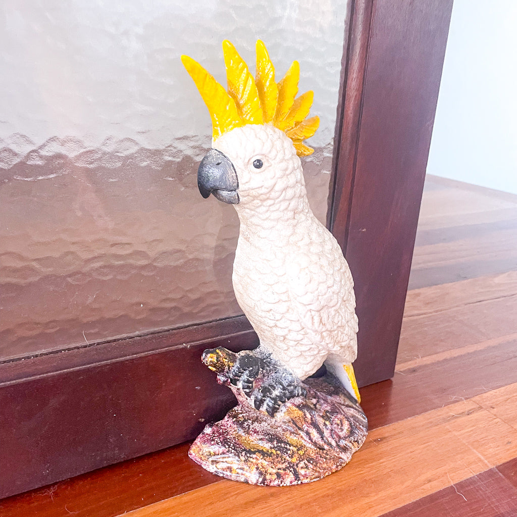 Purchase Yellow crested cockatoo iron door stop statue online now from Six things shop Australia.